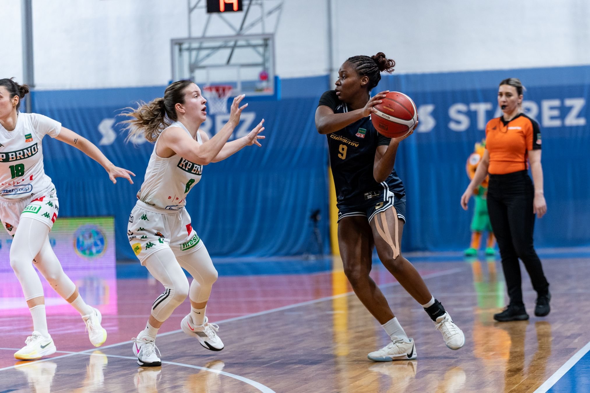 Levhartice do Brna odcestovaly bez pivotky Kateřiny Rokošové, která má lehce natažený vaz v koleni. Karoline Striplin tak na postu pod košem musely doplňovat Michaela Krejzová a Monika Fučíková.